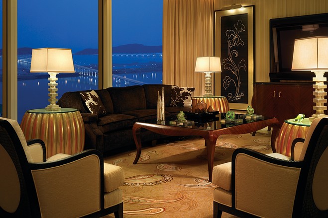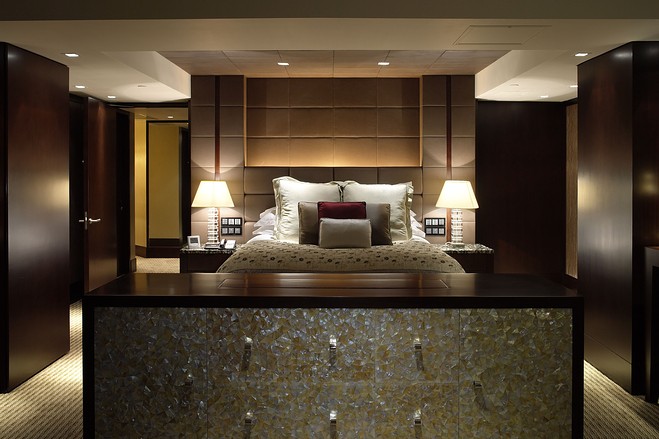 1 香港尖沙咀洲际酒店的总统套房:这套650平方米的复式公寓是全香港最大的总统套房,包括五间卧室、私人健身房、书房、客厅、饭厅、阳台和游泳池。