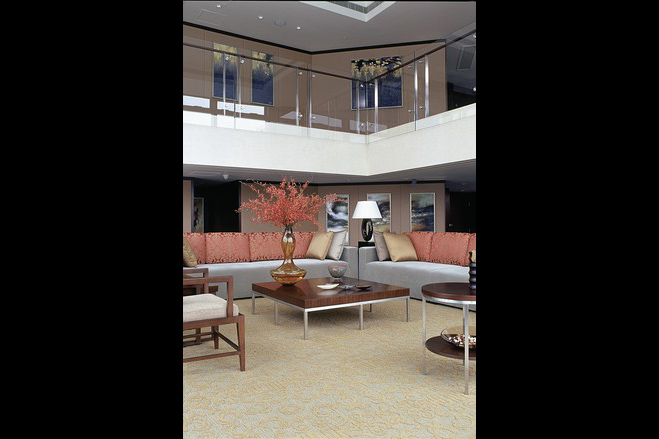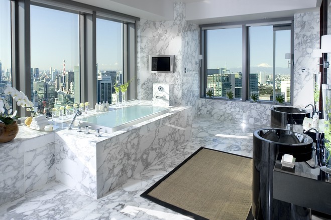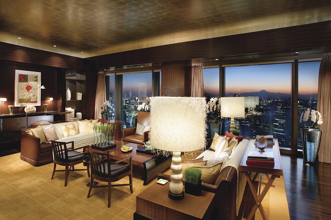 6 东京日本桥文华东方酒店的总统套房:250平米的总统套房可以改造成一居室或者两居室,改造后还有33平米的空间放步入式衣柜。房内还有起居室(图中)、食品储藏室和私人水疗室。