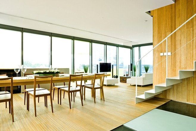 复式公寓用木材和竹子装饰,拥有独立的屋顶露台。 ![]() |
