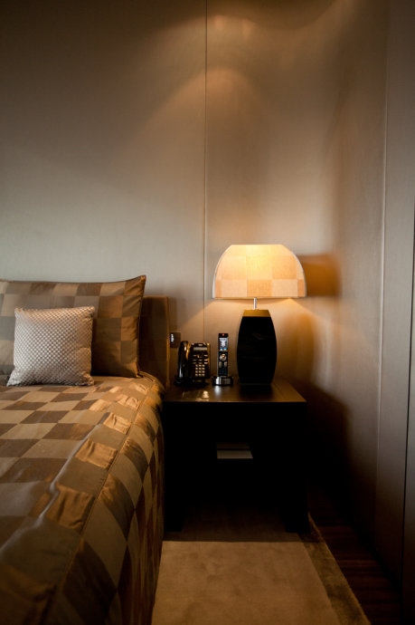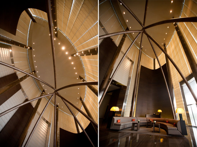 整个酒店的架构是三角放射型,所有的门都没有门把手,据说这是台湾风水大师的建议。
