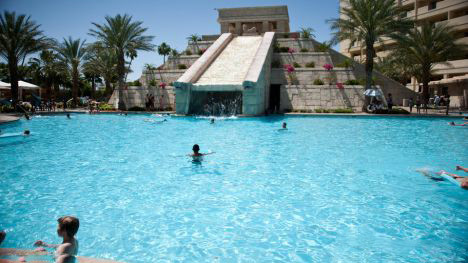 拉斯维加斯坎昆度假胜地的主池有玛雅人的金字塔以及滑水道。