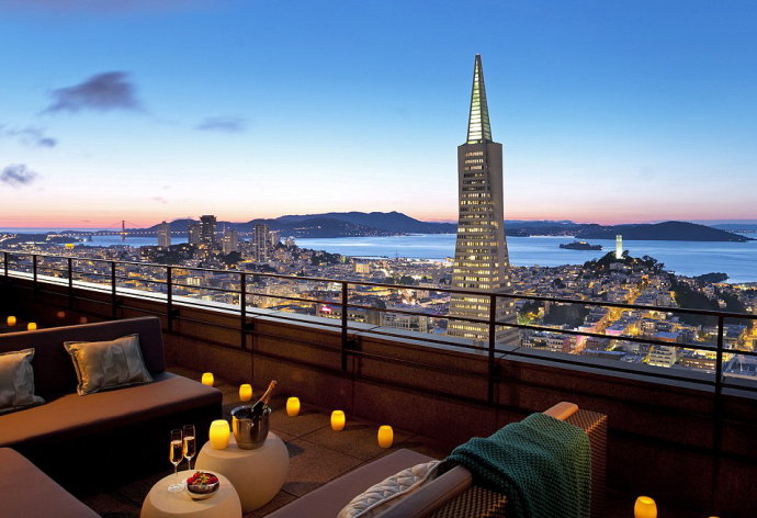 5.旧金山文华东方酒店东方总统套房使客人有机会一睹泛美金字塔的奇妙景观。