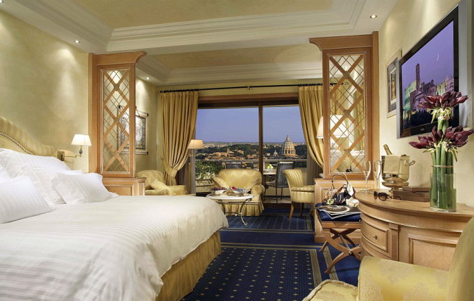 11.在罗马的卡瓦列里-华尔道夫-阿斯托里亚酒店阁楼和天文馆套房内,可领略这座“不朽之城”的惊人风光,还能清楚看到圣彼得大教堂。