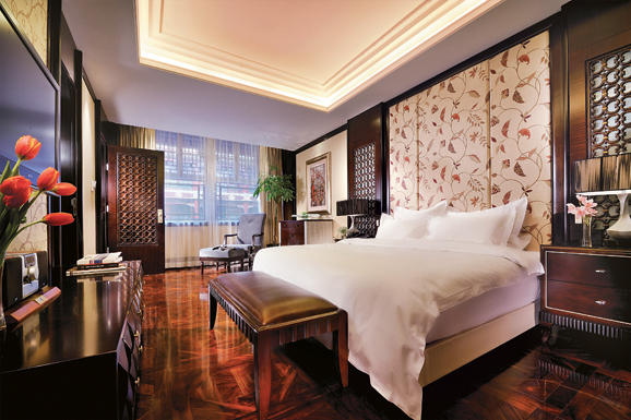 每个入住酒店的客人会首先被奉上一杯茶或一杯咖啡,递上一块湿毛巾,这是中国的待客之道。酒店为客人配备全职管家,这位管家既是客人在北京的全程导游,也是客人的中国文化顾问。他们会先按照中国习惯,请客人给家人打一个报平安电话,电话的前三分钟无论打往世界哪里都是免费的,取自“父母在不远游,游必有方”。酒店共有55间客房,全部没有房号,而是用中国古代55位皇帝的名号和简笔肖像加以区分,并特制了《皇帝传说》小册子,贴身管家会给客人介绍他所入住的房间那位皇帝的故事,以及在酒店内相关的菜式和酒吧里的饮料。酒店房价都以9为尾数,因为皇帝是九五之尊;而餐品和酒水的价格尾数都是7。因为7 是易经所讲的少阳之数,佛教文化中说,救人一命,胜造七级浮屠,得道高僧只能建七层浮屠塔,这些传统文化关联大大激发了客人的好奇心。酒店每晚的升灯仪式,是用外国人能够接受的方式传播中国文化的一种体现。离店时,酒店还会为客人特意奉上一枚该房间的皇帝印章,作为送别之礼。