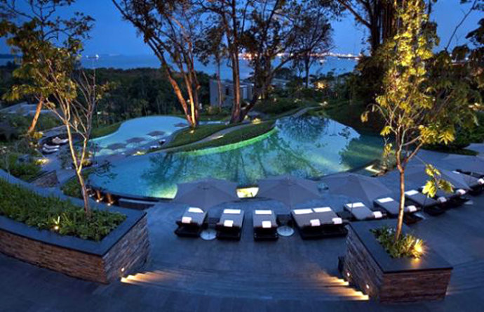 圣淘沙岛上的嘉佩乐酒店,在新加坡属难得一见的酒店,绝对称得上是气定神闲。它似乎完全不理会新加坡寸土寸金的事实,把11间套房、38幢别墅和61间豪华客房,建在了30英亩的茂密雨林小山丘上。