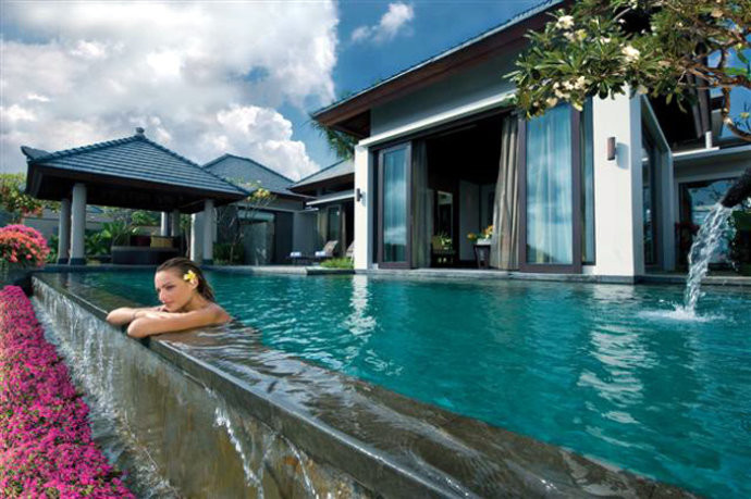印度尼西亚巴厘岛的乌干沙悦榕庄,坐拥叹为观止的景观,感觉宛如生活在梦中。崖边别墅,几乎就在悬崖的边缘,很大很漂亮。别墅外有无边际泳池,可以俯瞰悬崖和大海,让人震撼。