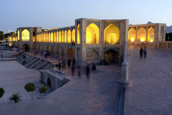 伊斯法罕是伊朗最古老的城市之一,在其全盛期时,也是最为优雅的城市之一。同样迷人的还有横卧在Zayandeh河上的郝久古桥,这座大桥是在1650年由阿拔斯大帝命令建造的,另外阿拔斯大帝还下令在伊斯法罕建了很多著名的清真寺和宫殿。大桥建在一个大坝顶上,桥上的滑动式闸门可以提升水位来灌溉农田,同时,这座拥有24个桥孔的大桥也很快成为了情侣约会的浪漫场所。大桥外观优美,就连国王也被其魅力所征服,他在桥里修建了自己的宫殿,用来接待皇室成员。
