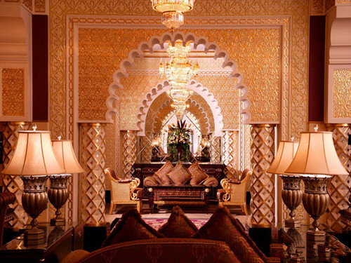 阿布扎比斥资30亿美元(约合人民币186亿元)奢华的酋长国宫殿酒店中设有114座装饰圆顶和1001件水晶吊灯,无处不彰显着其富丽堂皇的装饰风格。此外,酒店Hakkasan餐厅还为顾客提供着加入了使用金的甜点和价值958美元(约合人民币5954元)的松露红烧鲍鱼等极致奢华的美味佳肴。据悉,在2010年圣诞期间,酒店大堂中还曾装饰过一棵价值一千一百万镶满了宝石的奢华圣诞树。圣诞树。