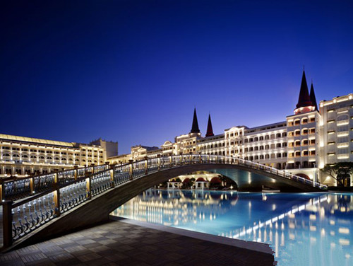 马尔丹宫酒店是土耳其海滨一座极致奢华的高档酒店,其中设有水疗中心、主题公园、占地16000平方米的巨大泳池、仿真的伊斯坦布尔地标和一片由9000吨埃及进口细沙覆盖的私人沙滩等。而其著名的水疗中心则向旅客提供着价值700美元(约合人民币4351元)有助于血液循环的香槟浴等休闲设施。