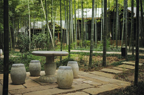憩园,是望湖山别墅最迷人的地方之一,一个供游客休息和喝茶的场所,是露天的,园中的任何设施都是用竹子和木艺制作的,与整个穹窿山的环境和氛围融于一体竹制桌椅在群翠环绕中,山下美景一览无余,林间养气充足,空气中负离子含量是一般空间负离子含量的400至500倍,呼吸着清新的空气,抿一口山间泉水泡的山茶,闭上双眼,感受大自然最原始的召唤。