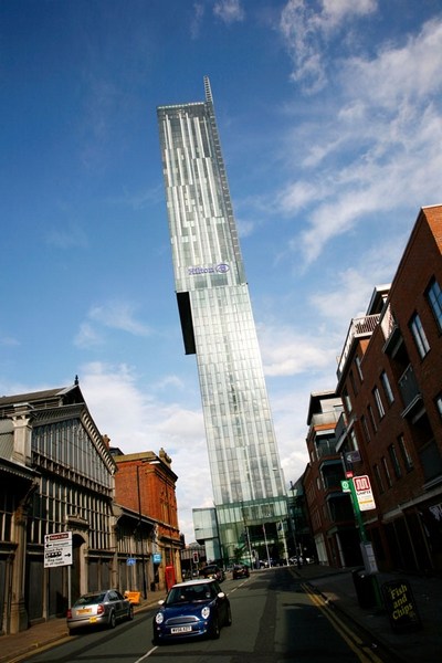 希尔顿酒店占据着比瑟姆塔一半的楼层,后者是曼彻斯特市最高的天际线。有关方面声称,曼彻斯特周边10个郡的居民可以在天气晴朗的时候看见这个造价高达1.5亿英镑的建筑。奇怪,这有什么值得吹嘘的。