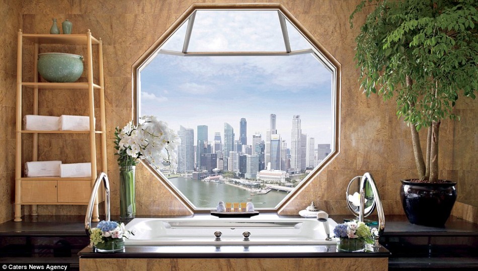 欣赏到这些美景的酒店客房在形状和大小上各不相同,而且入住价格也从昂贵到适中不尽相同。它们存在一个共同点,就是一间真正的可以欣赏风景的酒店客房。在新加坡丽嘉酒店丽嘉套房内洗澡的客人可享受欣赏新加坡天际线和滨海湾美景的乐趣。