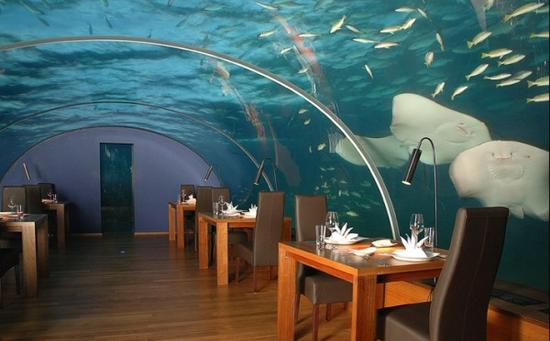 1.马尔代夫伦格里岛 康莱德酒店伊萨海底餐厅 (Ithaa Undersea Restaurant, Conrad Maldives Rangali Island, Maldives)