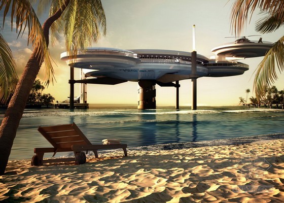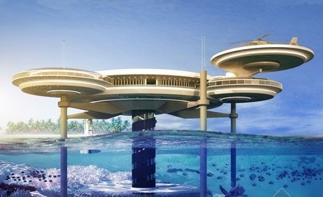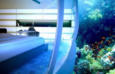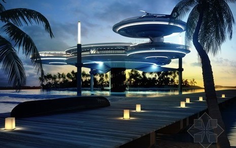 迪拜七彩水下酒店。一个较低的水平,能够淹没10米以下的海表面的一个水下酒店是迪拜的项目。酒店将在由两个主要的光盘,其中一个以上的水和一个下方的表面上,连接的五列的垂直轴为楼梯和升降机。下盘将包括21个酒店客房,水底景色,潜水中心和一间酒吧。周围的光盘将可以从主磁盘上被用来作为一个蓬勃的救生筏在紧急情况下或水浸的情况下分离。潜水中心将通过水下气闸访问,导致潜水员直入大海。也将是一个减压舱训练的目的,DOT解释说,客人也可以服用一个疗程,在试点的水下航行。在酒店的模块化结构将使其能够扩大,甚至移动到新的位置,根据DOT的水的铁饼不会是世界上第一个水下酒店-在马尔代夫已经有一个,另一个在佛罗里达州。然而,这将是世界上规模最大,第一个建在迪拜。
