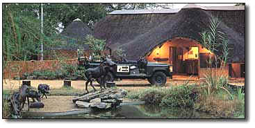 这里位于南非,都是一座座草屋顶、带回廊的小别墅,回廊延伸到灌木丛区,站在廊道里就可以饱览对面国家公园的美景。这里晚饭开饭的方式非常独特,就是敲一阵南非大鼓。女王当年来非洲访问,就