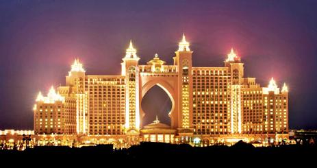 2008年底逆世开张的亚特兰蒂斯酒店(Atlantis Hotel)可谓将奢华二字演绎到了极致,这从其斥资2000万美元举行的开幕庆典就可看出。酒店以传说中拥有高度文明的古国亚特兰蒂斯为主题,以“成为一个主打海洋主题的家庭娱乐胜地”为噱头,将南太平洋所罗门群岛的海豚搬家至此,并建造了一个养有6.5万条鱼的巨型水缸,成为2008年迪拜最抢眼的地标,吸引了无数游客前来参观。这是一座囊括了众多迷人景致的豪华海洋主题度假村。拥有占地 17 公顷的 Aquaventure 水上乐园、700 米长的专属海滩和 2.5 公里的水上探险之路。亚特兰蒂斯酒店还提供各种水上运动项目,并开设有水疗、健身中心和其他运动及休闲设施。