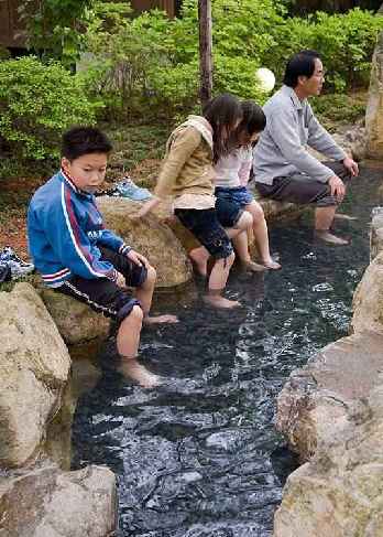 集体足浴东京中部的大江户温泉物语酒店将日本传统的乡村度假体验带到城市,提供集体温泉足浴服务。足浴使用的水来自于地下1400米。这家酒店的室内和户外足浴服务并不仅限于入住酒店的客人。