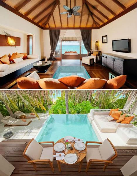 马尔代夫四季度假村最大的特色就是水上风景。所有的别墅、餐厅、游泳池似乎都悬浮水面之上,这座度假村坐落于两座永久珊瑚岛之上,异国建筑风格十分明显,十廊直通碧海深处,奢华花园唯美梦幻。