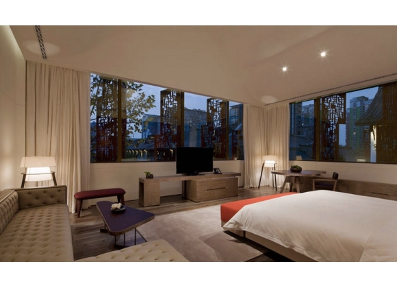点评:向来只在国宾面前“赏脸”的钓鱼台终于在成都宽窄巷子深处“下凡”。法国顶尖设计师Bruno Moinard深谙宠客之道,保留古宅院的深沉和迂回,掺入当代的明快与玩味,推开落地窗,便是宽窄巷子中古老的市民风情。