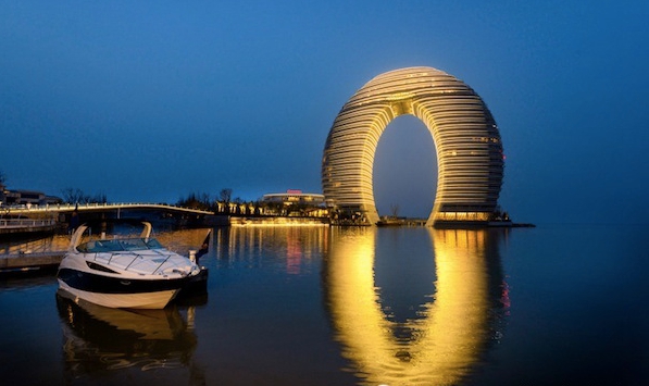 点评:太湖之滨最耀眼的建筑,“湖州喜来登”好似水面上的光影精灵,300多英尺的弧形塔楼,全玻璃屋顶,俯瞰整座太湖的秀美。