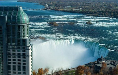 位于加拿大安大略省的希尔顿大酒店拥有世界上独一无二的瀑布景观房。这里紧邻尼亚加拉大瀑布,坐在房间里,您可以轻松地欣赏到北美最壮丽的瀑布奇观。遇上晴朗的天气,您还可以捕捉到瀑布磅礴的水雾中一抹弯弯的彩虹。每当夜幕降临霓灯初上之时,从希尔顿酒店的窗户向外看去,晶莹的水珠映衬着华灯,一切都美得让人沉醉。
