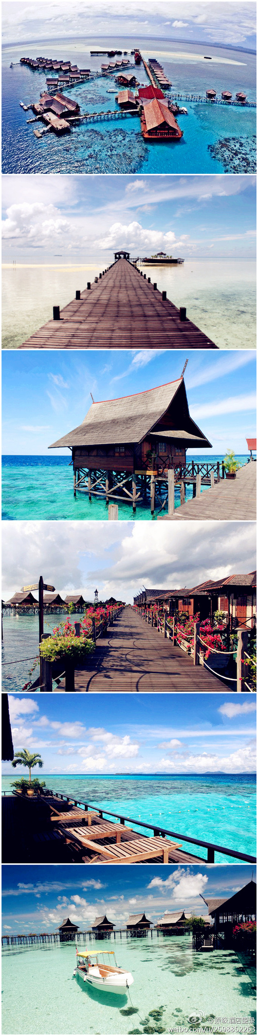Sipadan-Kapalai Dive Resort,一个由51间水上屋组成的度假村酒店,位于美丽的诗巴丹,没有沙滩,全部水上屋,木栈道,尖顶房子,东南亚装修,简约自然。位于海中心的51号房间最炙手可热。在这里放松心情,躺在沙滩凳上晒太阳,下海浮潜,简直写意非常~