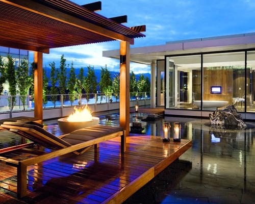 酒店以Pacific Rim命名,自然秉承了这样的气质,尤其是酒店顶层的屋顶泳池。透过温哥华清澈的空气,在这里可以眺望远方的北海岸山脉的美景,泳池还设有一个按摩浴缸和相对私密的休息小屋。如果你不打算游泳或晒日光浴,可以带上三五好友,在这个小屋里观看大屏幕电视。