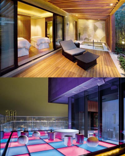 北京三里屯最诱人的景色由来往的潮流男女组成,而三里屯Village早就成为了这些京城潮人的生活心脏。瑜舍酒店只有98间客房,却在顶层开设了一间阳台面积240平方米的复式阁楼,和瑜舍任何一个房间一样,这间套房淋漓尽致地表达了隈研吾的简约设计理念,它把“藏”这个概念发挥到了极致,比如,马桶、淋浴房、衣橱等都藏身在墙中,更绝妙的是,房间中的所有家居用品和电插头也都收藏到墙内。也许是因为这样的设计能更好地利用空间,所以这间阁楼对于住客的吸引远远没有那些喜欢包场做派对的人大,尤其是入夏之后,三里屯的夜景如此富有都市气质,你如果留心,就会看到那个阁楼一角,有人穿着迷你裙从冷气房中溜出来,举着酒杯站在偌大的阳台上,和你温和地打招呼。这就是“三里屯人”。