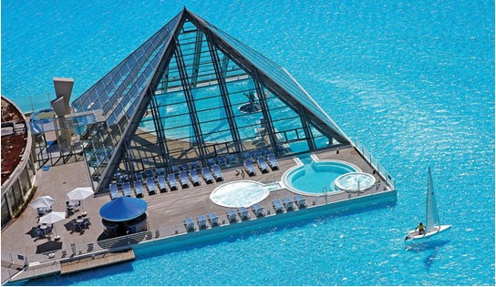 在智利首都圣地亚哥西侧约90公里处的圣阿方索德尔玛度假村,有一片世界上最大的游泳池。它由智利设计师Fernando Fischmann设计,经吉尼斯纪录评审认定为全球最大的“水晶池”。