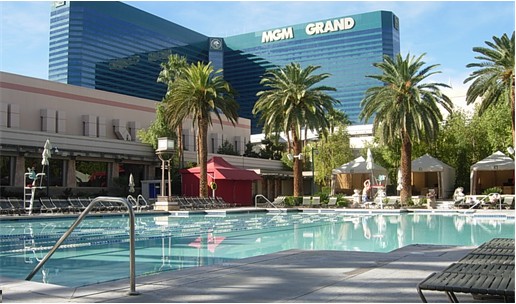 米高梅大酒店(MGM Grand) 是目前全球最大、房间数最多的赌城酒店,位于拉斯维加斯大道南段,与纽约纽约赌场酒店相对。建于1993年,酒店以著名电影公司为主题,门前一尊傲视群雄的金色狮子雕像,表明其“影业雄狮”的老招牌,许多世界顶级的比赛和演出都在这里举办。米高梅游泳池是拉斯韦加斯费用最高昂的泳池,有5个小型泳池、3个按摩池、小桥、瀑布及假山等。