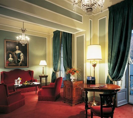 刚走进Le Grand Hotel du Lac时,最 让我挪不开步子的,是那些无处不在的鲜 花,这些鲜花由一位专业花艺师打理,每天盛开在酒店的公共空间,但不久,我的注意力就从花儿的艳光转移到盛放它们的容器、桌子、和周围的小空间这个尊贵的老酒店逐渐呈现出源源不断的奇妙细节: 古董家具、珍贵的艺术品、 奇趣的异国风 情小摆设、貌似寻常却耐人寻味的生活用品、美轮美奂古色古香的沙龙,它们安守在 酒店各处,呈现着各自的尊贵气质。