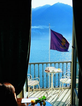 房间依然沿袭了浓浓的历史风味:古色古香的家具、华丽的吊灯、油画、丝织窗帘……暖色调的整体装修风格给人以厚重 而沉稳的感觉;而朝向科莫湖的每个房间的窗口,几乎就是比例完美的画框,将清澈湖面的粼粼波光送到眼前。我最喜欢酒店的阳台,可以一览无遗科莫湖的美丽风光。