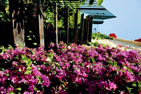 毕加索曾在小镇Eze定居,35年后哲学家 尼采又在同一条小路上散步。由尼斯出发,沿 途穿越的是一个接一个迂回曲折的山峰。只需20分钟,就到达高428米断崖上的石城Eze入 口。我们要穿过用鹅卵石铺成太阳图案的狭窄小径,才能到达酒店。石径虽窄,两旁却种满了 碧绿青葱的树木和五彩芳香的鲜花,加上摆设着现代艺术画家作品的画廊,每一扇门的背后似乎都隐藏着什么,让你想去看个究竟。