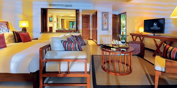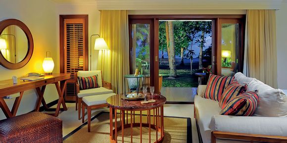 这里选用的是木材、大理石、石灰岩和粉色花岗岩等自然材料建造而成。小套房距离海岸仅15米,房间的装饰风格简约而又不失奢华。此外这儿还配备有舒适宽敞的浴室和设施齐全的露台,可以为您和爱人提供私人用餐的空间。房间内可看到热带花园景观和海岸景观。