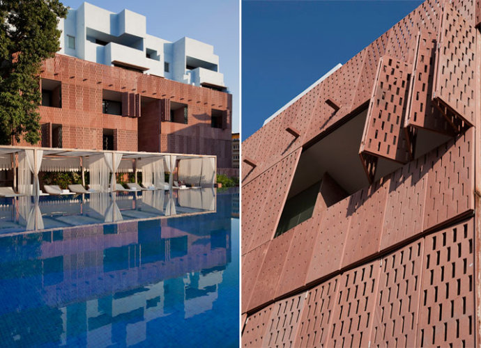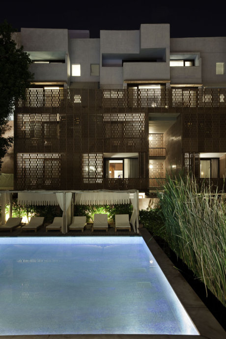 旅店具有39间客房,以梅兰加尔古堡地下室为据点举行打造,该修建布局获2011天下修建节的“年度假日修建奖占地1.5英亩,包含三个环绕着中心庭院漫衍的18世纪布局体量。每座修建所占空间较小,漫衍着泳池、用餐区、spa和开放式安息区等大众空间。经由过程应用该地区传统由来已久的双皮层构体,石格子构造有助于修建物的天然冷却并包管了隐私。