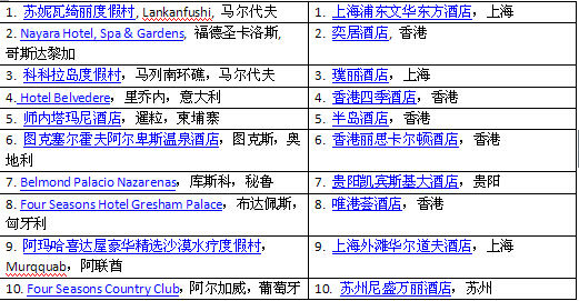 世界最佳酒店Top 10 中国最佳酒店Top 10