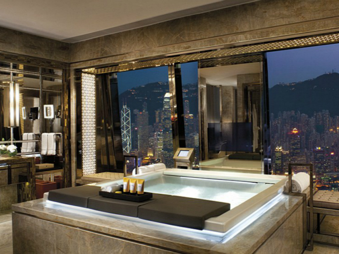 丽思卡尔顿位于香港九龙,是一座繁华街区簇拥之中的豪华酒店。酒店就在环球贸易广场大楼的103层,在超过490米的高空中沐浴肯定别有一般滋味,快来将维多利亚港口和香港这座不夜城的景色尽收眼底吧。