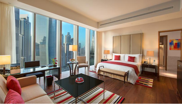 这家酒店除了地理位置优越与哈利法塔和迪拜购物中心毗邻,最大的亮点就是酒店的喷泉景观房可以在阳台上或者餐厅欣赏到音乐喷泉表演,晚上的时候相当震撼。