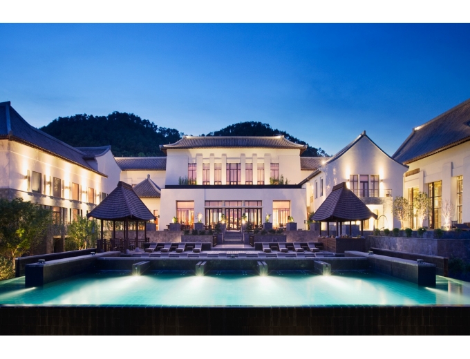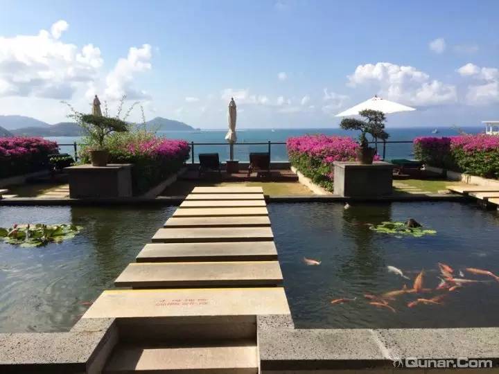 该酒店面朝浩瀚的南中国海,庭院中的88米长无边镜面泳池直通海边,设计融合了汉唐与杭派美学风格。