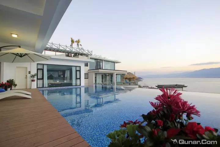 室外无边界泳池直面苍山洱海,可泡在泳池中看日出、赏夕阳、观星空,饱览苍山洱海的迷人美景。