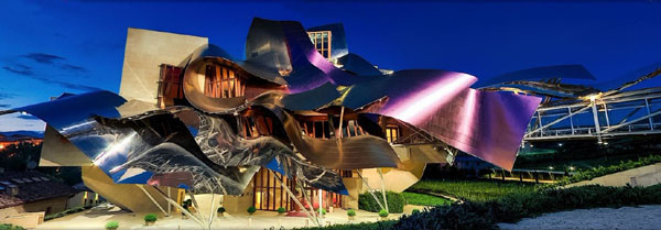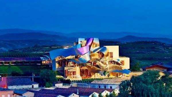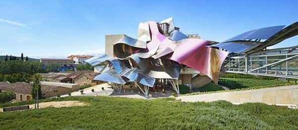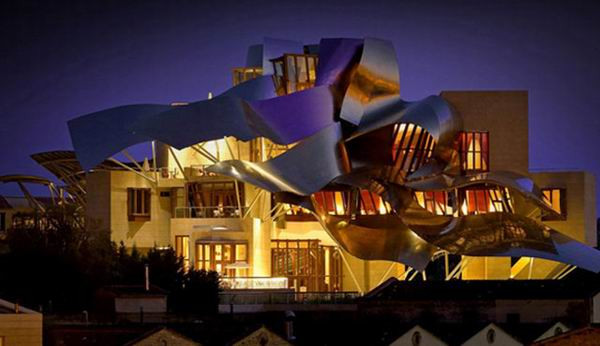 这家坐落在西班牙巴斯克地区的阿拉瓦葡萄酒产区中心的酒店是由世界著名建筑师弗兰克-盖里设计的,同时他也创造了布拉格的跳舞的楼房和毕尔巴鄂的古根海姆博物馆。该酒店设计是为了反映出一个酒瓶和藤蔓的形象。