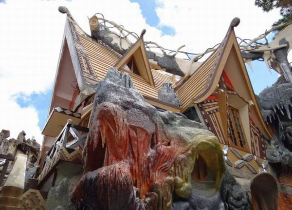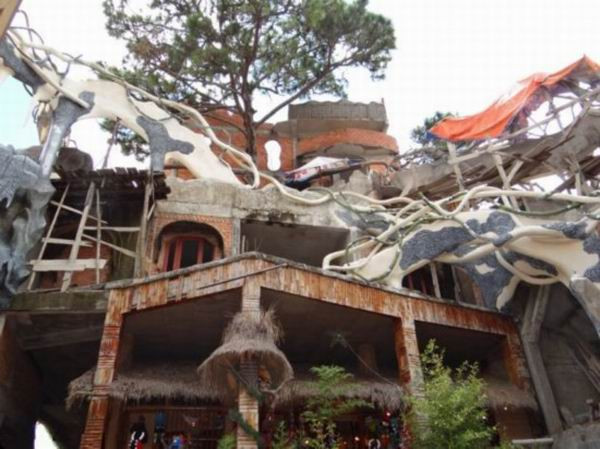 这座酒店被设计成了一座令人毛骨悚然的童话树状的房屋。设计者Hang Viet Nga后来将它命名为“疯狂的房子”,因其黑暗而闻名。你敢住在这里吗?