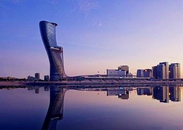 迪拜的邻居——阿布扎比也有一些有趣的建筑结构,首都门便是其中之一。它是阿布扎比最高的建筑之一,拥有众所周知的打破纪录了的向西18度倾斜角,其倾斜 度甚至过于著名的比萨斜塔。该建筑一共35层,包括189间客房,其中有22个套间,此外还有一个室外游泳池和健身中心。除了作为酒店之外,它还是阿布扎 比国家展览中心最为引人注目的一处,以及是中东最大的会议和活动中心。