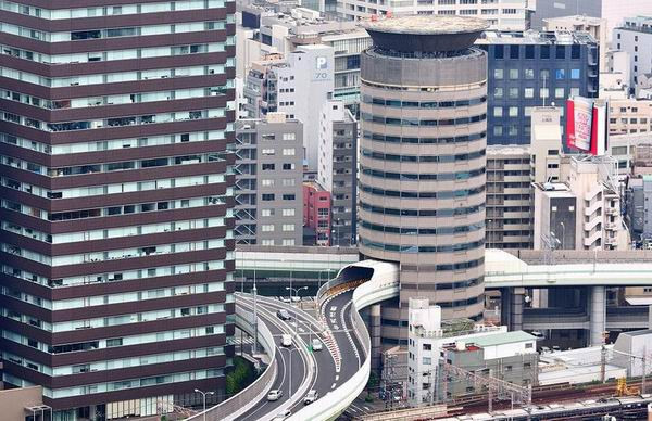 门塔建筑是该地土地所有者和日本政府协商的结果。原本该地拥有者想在此修建一座建筑,奈何政府已经计划在此修建高速公路,因此经历了五年的谈判之后,门塔 建筑方案产生。远看,你会发现它被日本阪神高速公路分成了两部分,5,6,7层被其占据。不过别担心,电梯并不会止步于此,它直接跳跃到了第8层。