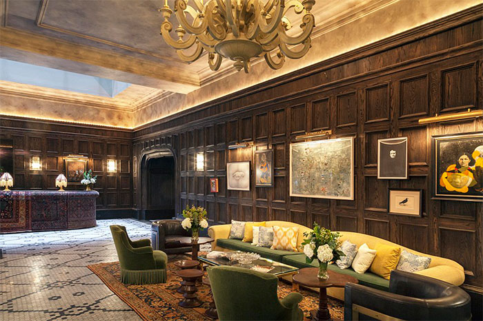 汤普森酒店集团(The Thompson Hotels Group)开放了拥有 287 个房间的比克曼酒店,聘请室内设计师马丁布鲁尼兹奇(Martin Brudnizki)为其设计出一种折衷美学,使用的元素有土耳其地毯、仿古家具、天鹅绒扶手椅以及各种古怪的肖像画。