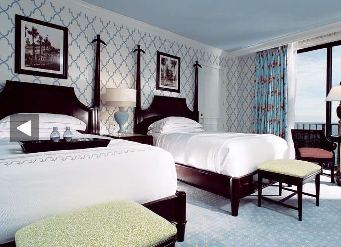 这家海滨意大利文艺复兴时期风格的酒店位于棕榈滩,历史悠久。在最近完成了8000万美元的装修,这两位从事高级服装定制的新帝国设计师Mark Badgley and James Mischka,在房间中大面积地采用温暖的色调,配着全景玻璃外宝蓝色的大海,那些专门定制的珊瑚色、珍珠白、沙砾黄的复古家具,一切都带上了梦幻的色彩,房间里弥漫着清凉闲适的氛围。
