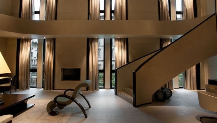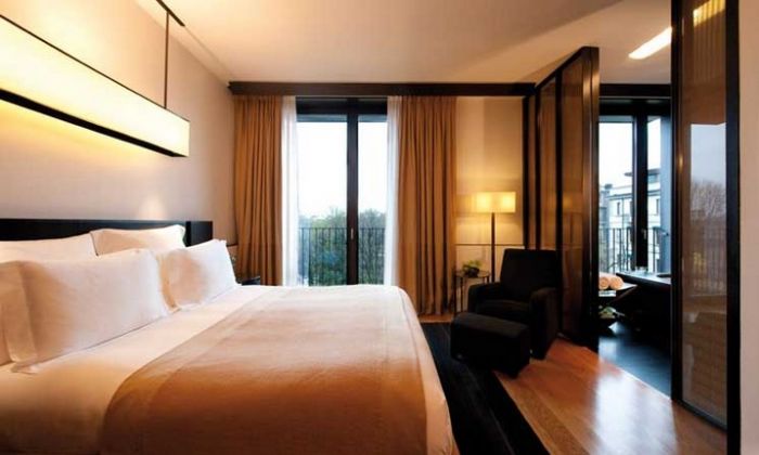 The Bottega Veneta的酒店套间如今越做越大,从开在纽约圣瑞吉斯第一家,到如今的遍布意大利和罗马。酒店的设计师Tomas Maier坚持复杂精致的设计理念,将中性风发挥得淋漓尽致,卡其色、芥末黄的冷色调,搭上亚麻类的材质,返璞归真中透着清爽的怡然。除此之外,房间里随处放置的手工雕刻的威尼斯玻璃器皿配上羊绒毯子,在低调中彰显着工业设计的奢华。