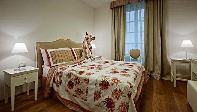 这是一家保持新古典主义的酒店,其中的65间客房设计灵感都来源于童话故事,仿佛就是不会谢幕的布景台。其中爱丽丝的房间是一个超大的茶杯,而小红帽的则是在床上有一个巨大的大灰狼的图案。在这样充满童话气息的酒店中,成人世界里的繁杂似乎也被远远地隔在了门外。