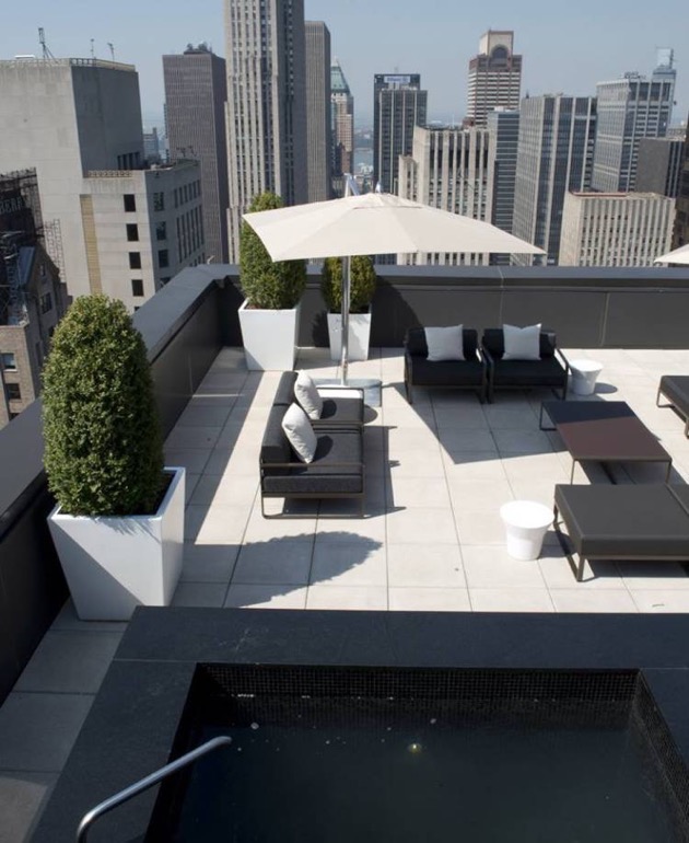 三楼有一个巨大的露台,摆放着定制的浴盆。在这里一边品香槟一边欣赏城市街景相当完美。要是想和朋友们一起娱乐,可以选择屋顶的私人吧台和壁炉,屋顶还有一个室外的接待区。