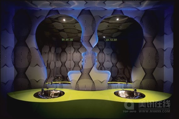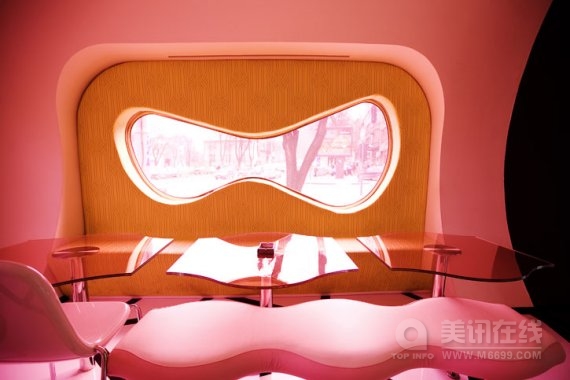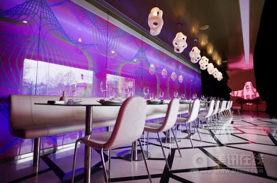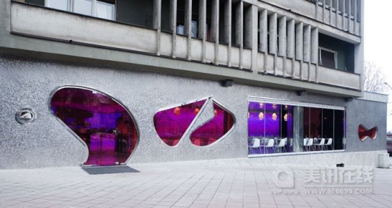 魔法咖啡屋(Majik Cafe)位于塞尔维亚贝尔格莱德,其室内空间是由美国未来型家居设计界巨星凯瑞姆.瑞席(Karim Rashid)设计的。明亮大胆的构造与颜色是对共产主义时期的野兽派沉闷的灰色建筑的强烈视觉冲击,海啸式的形状与颜色在室内产生了爆炸效应,是瑞席从数码设备上获得的灵感。